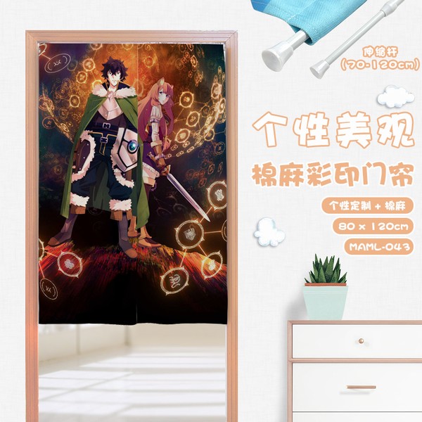 MAML043-盾之勇者成名录动漫仿棉麻彩印门帘(可调节伸缩杆) 80X120CM