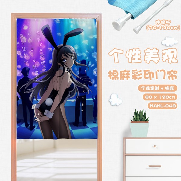 MAML049-青春猪头少年不会梦到兔女郎学姐动漫仿棉麻彩印门帘(可调节伸缩杆) 80X120CM