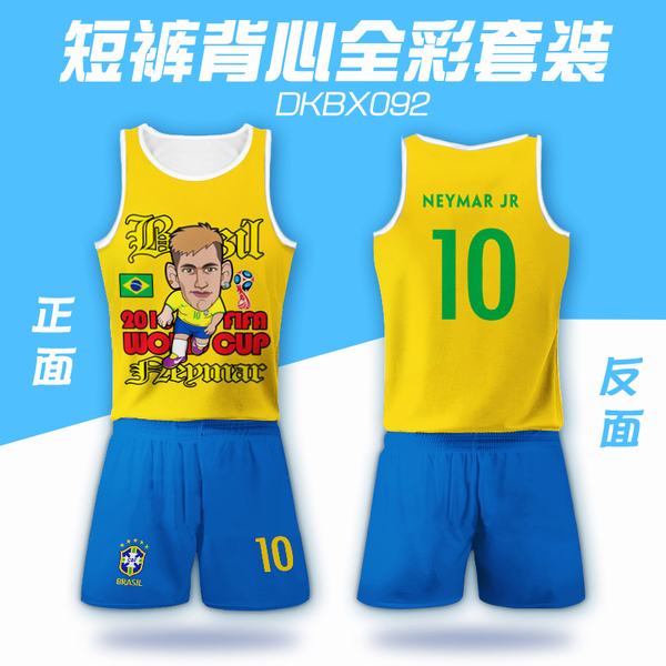 092-2018俄罗斯世界杯巴西内马尔球衣网眼布短裤背心套装一套出S M L XL XXL