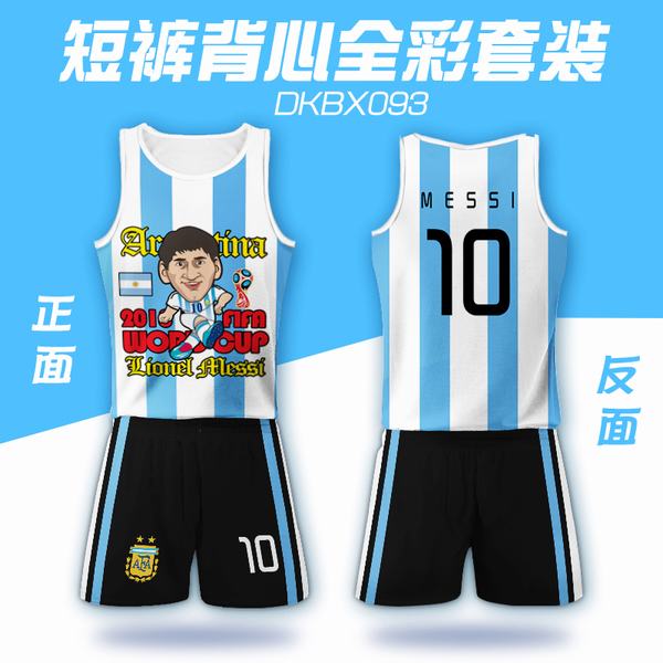 093-2018俄罗斯世界杯阿根廷梅西球衣网眼布短裤背心套装一套出S M L XL XXL