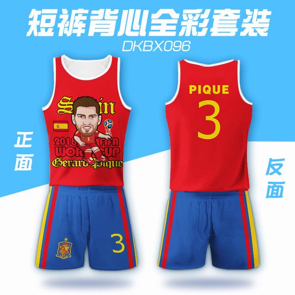 DKBX096-2018俄罗斯世界杯西班牙皮克球衣网眼布短裤背心套装一套出S M L XL XXL