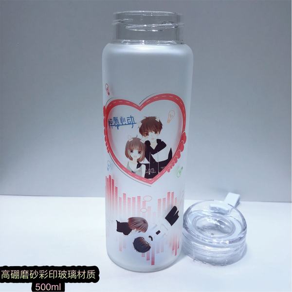 怦然心动A款 高硼磨砂彩印玻璃杯水杯杯子盒装 500ML 7X7X23CM 0.33KGS
