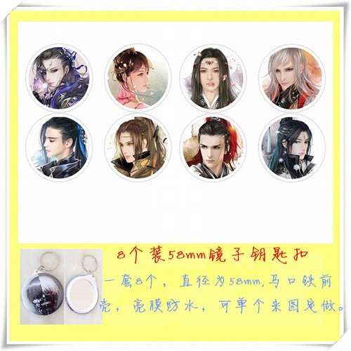 秦时明月8款一套圆形镜子钥匙扣58mm