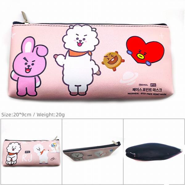 BTS防弹少年团 粉色小兔 PU印刷学生文具盒文具袋收纳袋零钱包 18X5X5CM 45G 2个起批