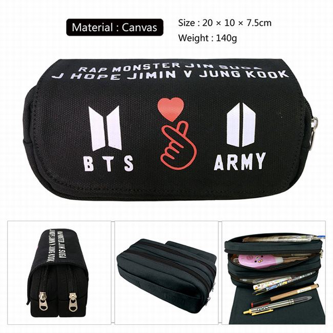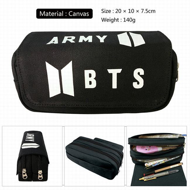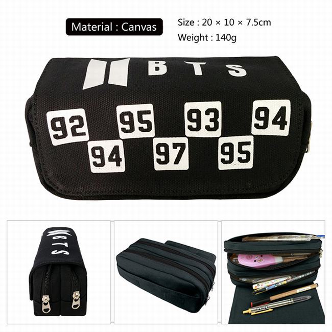 BTS字母帆布多功能双层拉链翻盖钱包笔袋