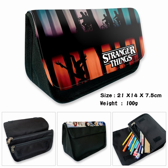怪奇物语-3B 动漫双层多功能大容量帆布学生笔袋文具盒钱包 21X14X7.5CM 100G