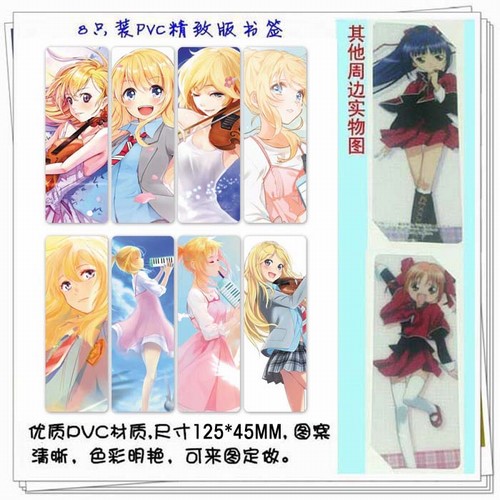 四月是你的谎言8只装PVC精致版磨砂书签随机5套起批