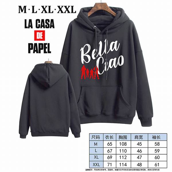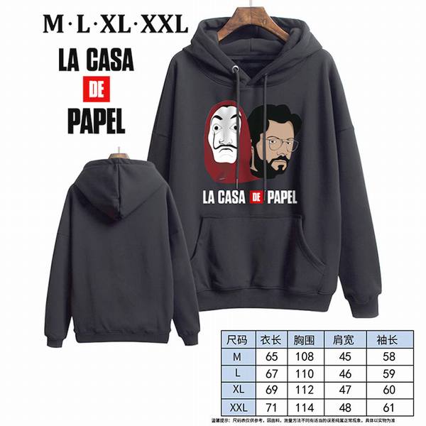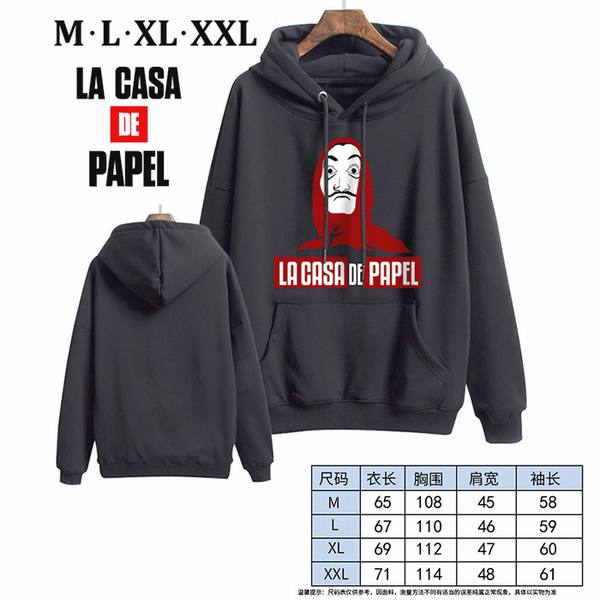 纸钞屋-2 黑色 印花带帽加绒加厚卫衣 M L XL XXL