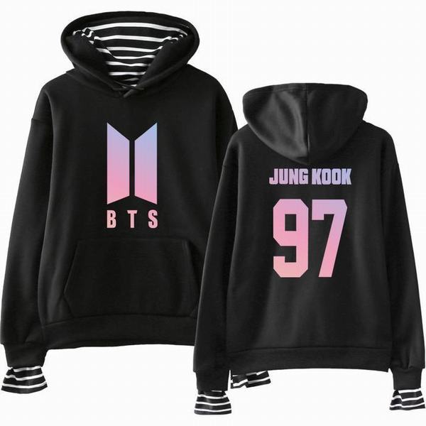 2018新款bts防弹少年团欧美潮牌假两件连帽卫衣女款 粉色 JUNG KOOK97号 2件起批 XXS XS S M L XL XXL