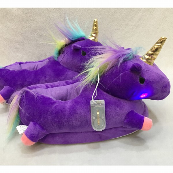 彩虹小马宝莉发光独角兽全包脚保暖毛绒毛毛鞋紫色27CM