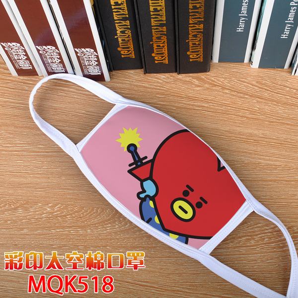BTS防弹少年团BT21爱心MQK518彩印太空棉口罩 5个起批