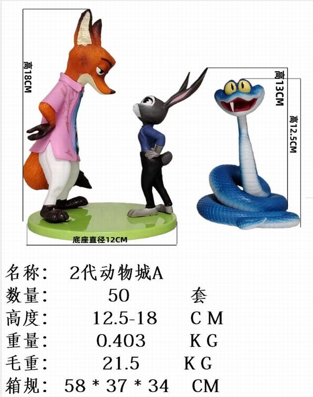 商品名称: 3款一套 2代 疯狂动物城 A款 袋装手办 高12.5-18cm 一箱50套