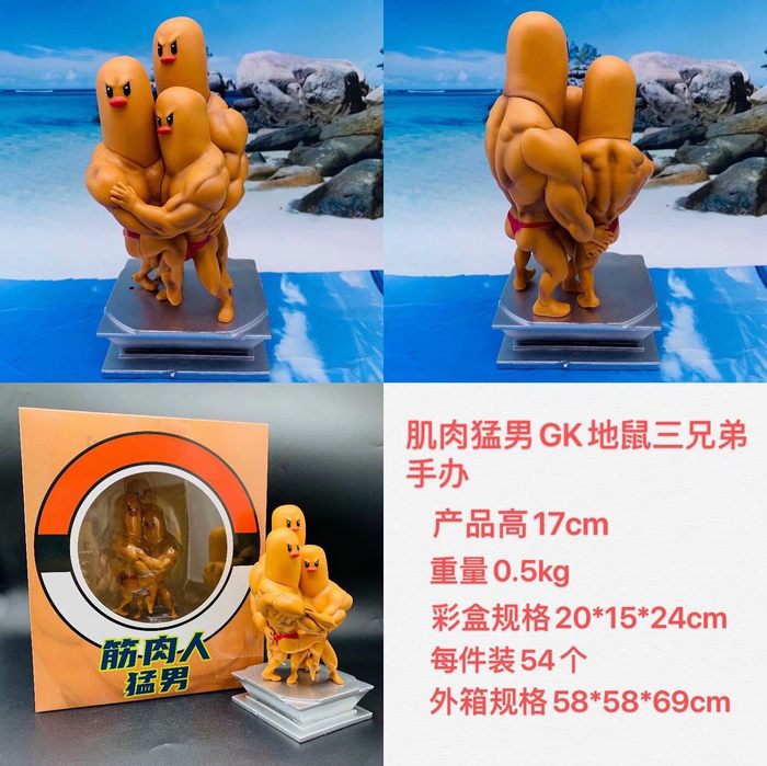 商品名称: 宠物小精灵 宝可梦 健身 肌肉猛男地鼠三兄弟 盒装手办 高17cm 一箱54个
