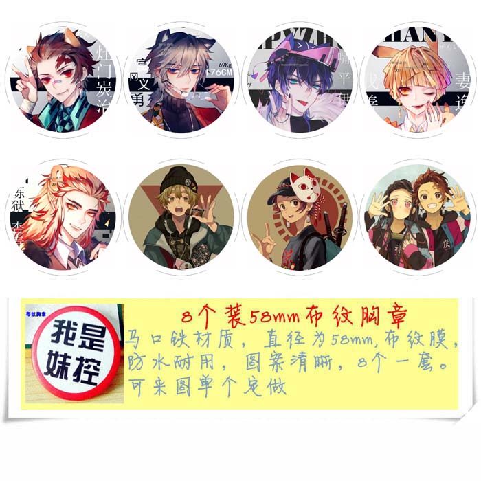 商品名称: 鬼灭之刃A款 8款一套圆形布纹胸针 胸章挂件 58mm