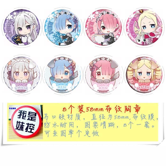 商品名称: 从零开始的异世界生活A款 8款一套圆形布纹胸针 胸章挂件 58mm