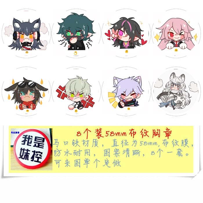 商品名称: 全员恶玉 8款一套圆形布纹胸针 胸章挂件 58mm