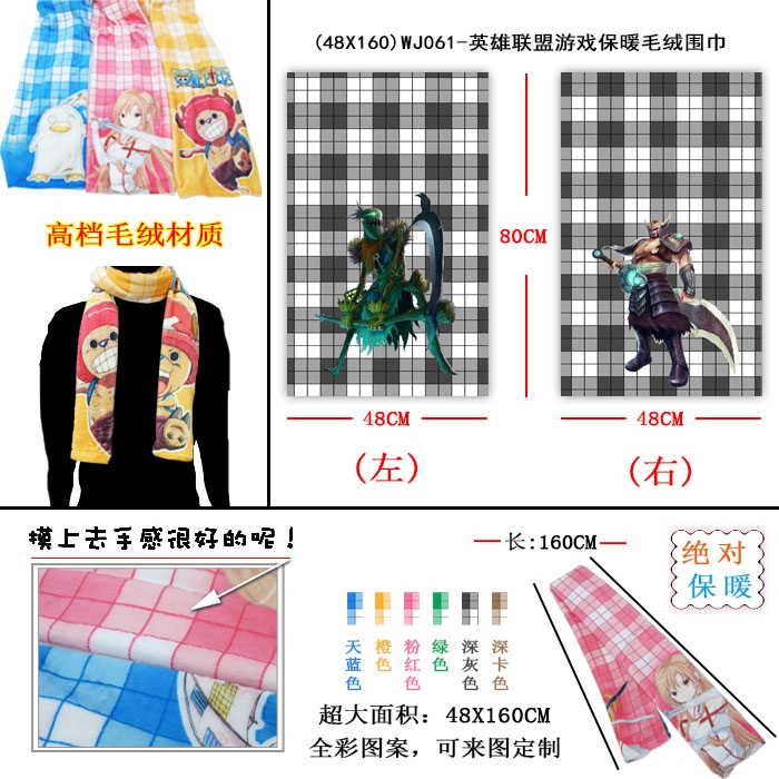 WJ061英雄联盟游戏保暖毛绒围巾48X160
