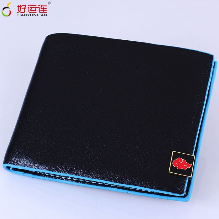 火影忍者红云金色小号标志进口PU皮短款蓝色油边钱包