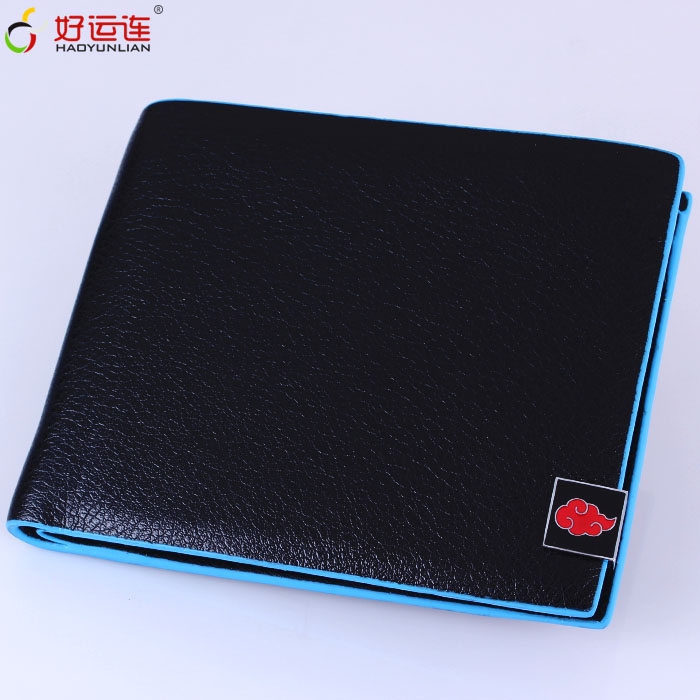 火影忍者红云银色小号标志进口PU皮短款蓝色油边钱包