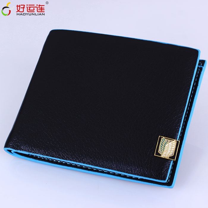 进击的巨人调查兵团金色小号标志进口PU皮短款蓝色油边钱包