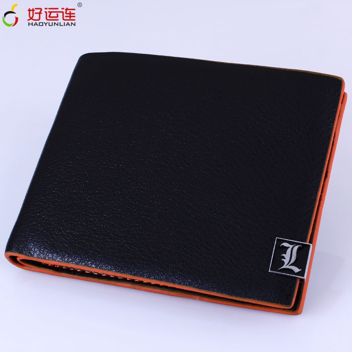 死亡笔记L银色小号标志进口PU皮短款橙色油边钱包