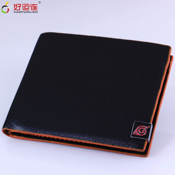 火影忍者木叶银色小号标志进口PU皮短款橙色油边钱包