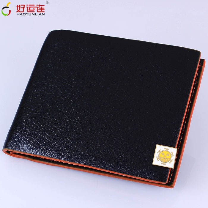 海贼王外科医生金色小号标志进口PU皮短款橙色油边钱包