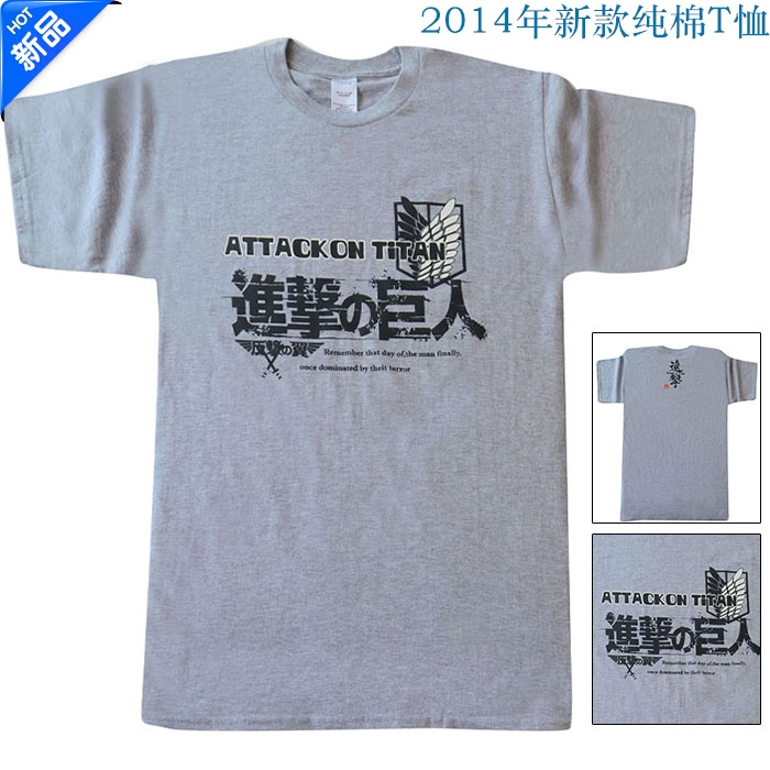 进击的巨人标志灰色纯棉短袖T恤男女通用款S M L XL