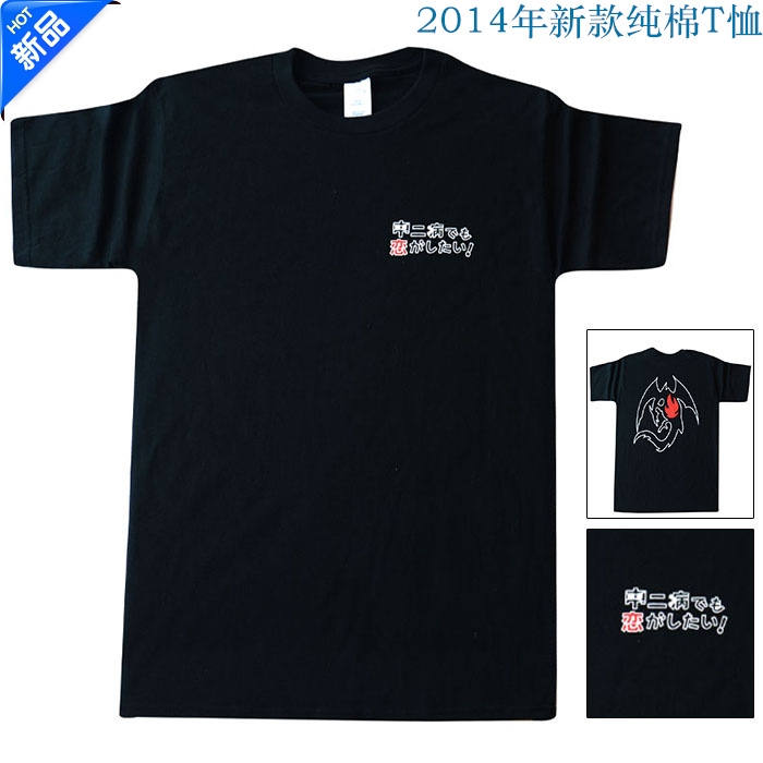 中二病也要谈恋爱黑色纯棉短袖T恤男女通用款S M L XL