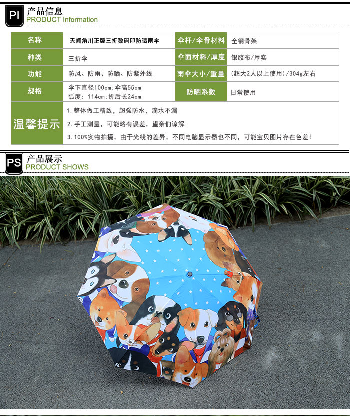 天闻角川正版汪星人西瓜印折叠防晒雨伞