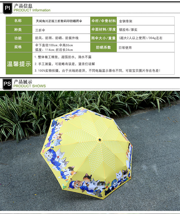 天闻角川正版喵星人西瓜印折叠防晒雨伞