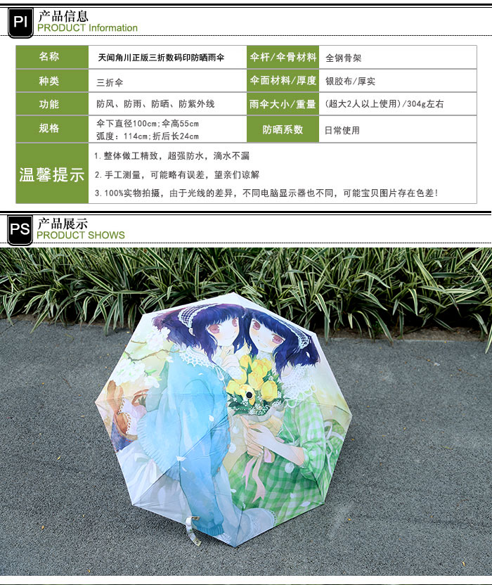 天闻角川正版彩Chiya印折叠防晒雨伞
