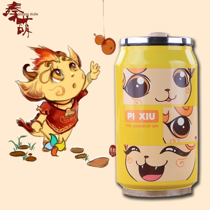 秦时明月正版貔貅Q版黄色创意易拉罐真空杯保温杯