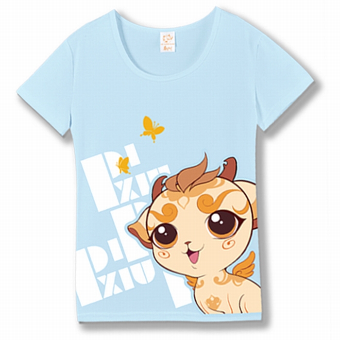 秦时明月正版Q版貔貅蓝色纯棉弹性短袖T恤 M
