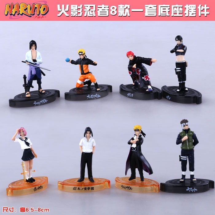 火影忍者特别版校服小樱佐助8款一套盒装底座手办