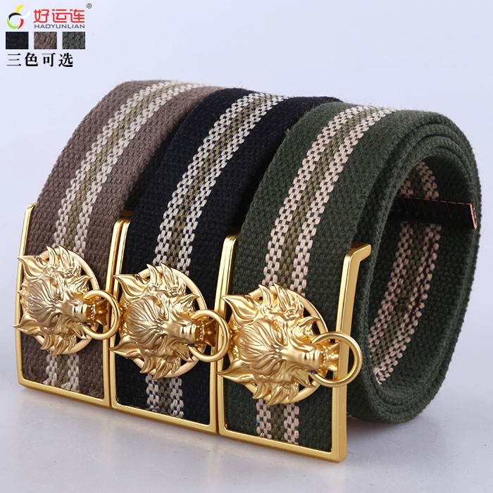 新款潮流时尚帆布皮带-金色最终幻想狼头(腰带三色可选随机出需要指定颜色请备注)