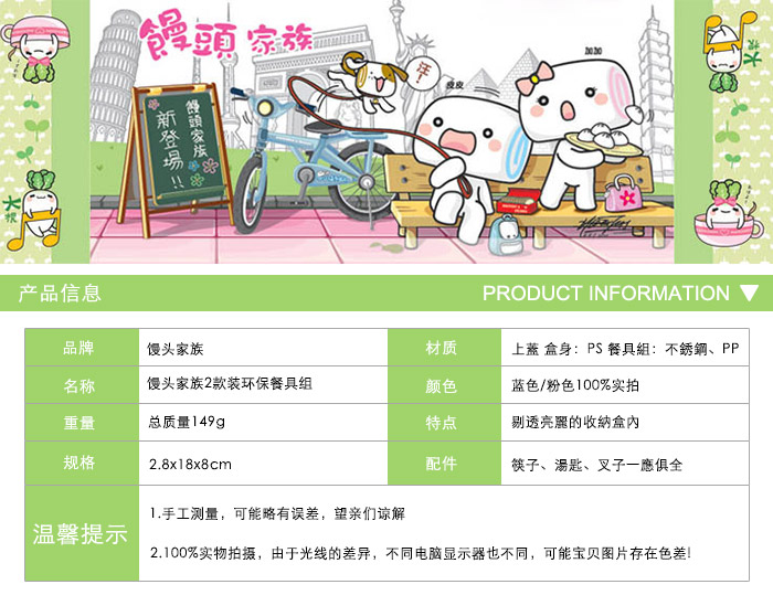 PP-H0106馒头家族正版系列3款装环保餐具组