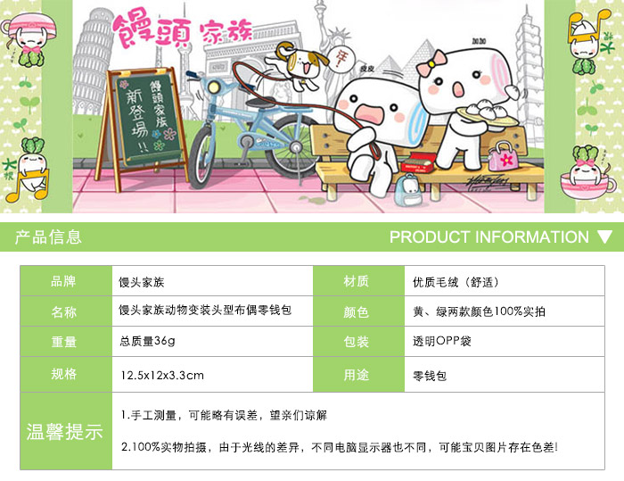 PP-D0118馒头家族正版系列动物变装头型布偶零钱包
