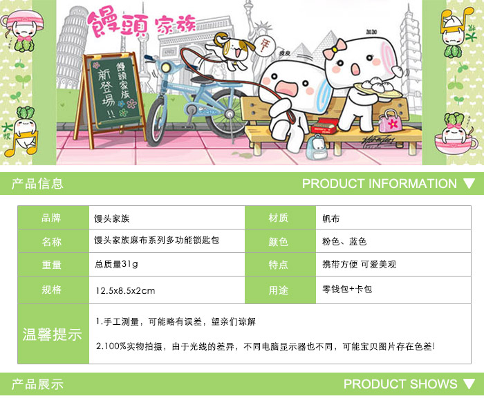 PP-B0053馒头家族正版系列麻布系列多功能锁匙包