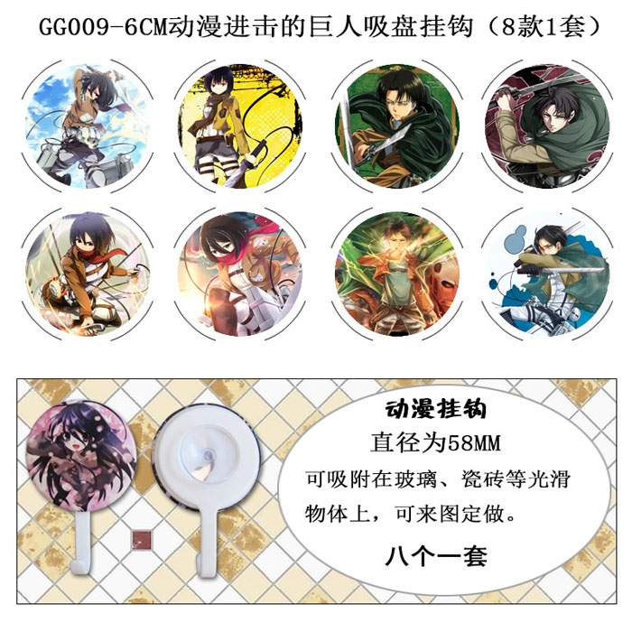 GG009-动漫进击的巨人8款一套吸盘挂钩6CM