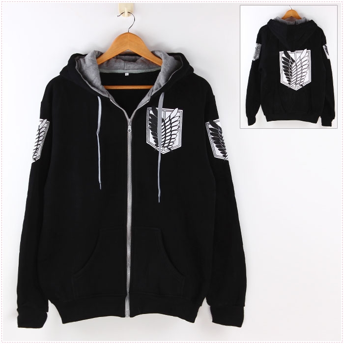 进击的巨人调查兵团标志新款冬季纯棉拉链黑色卫衣 XL