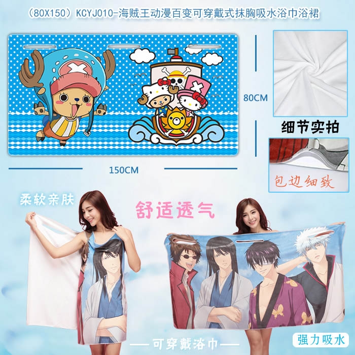 KCYJ010-海贼王动漫百变可穿戴式抹胸吸水浴巾浴裙80X150