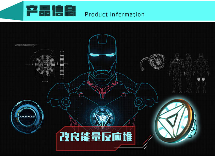 复仇者联盟钢铁侠方1代舟反应堆遥控心脏反应炉胸灯手办