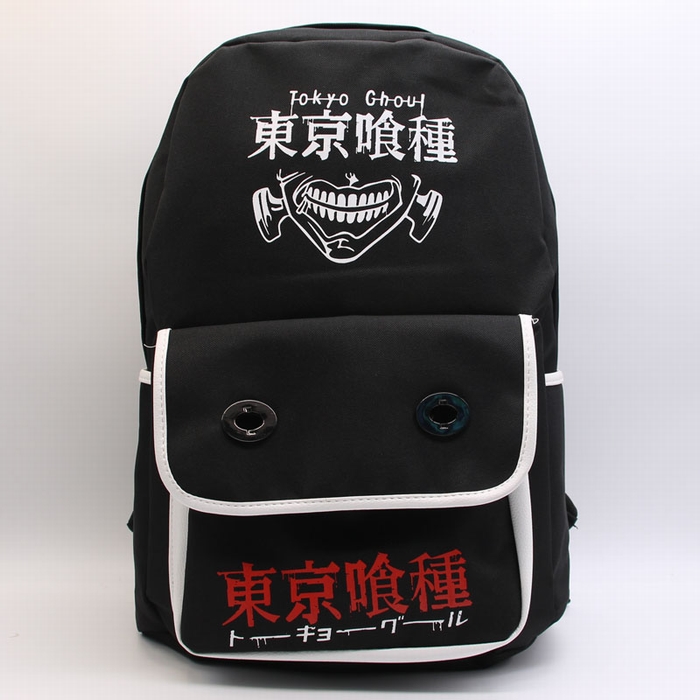 买一送一224系列东京食尸鬼标志黑色尼龙布学生双肩背包05