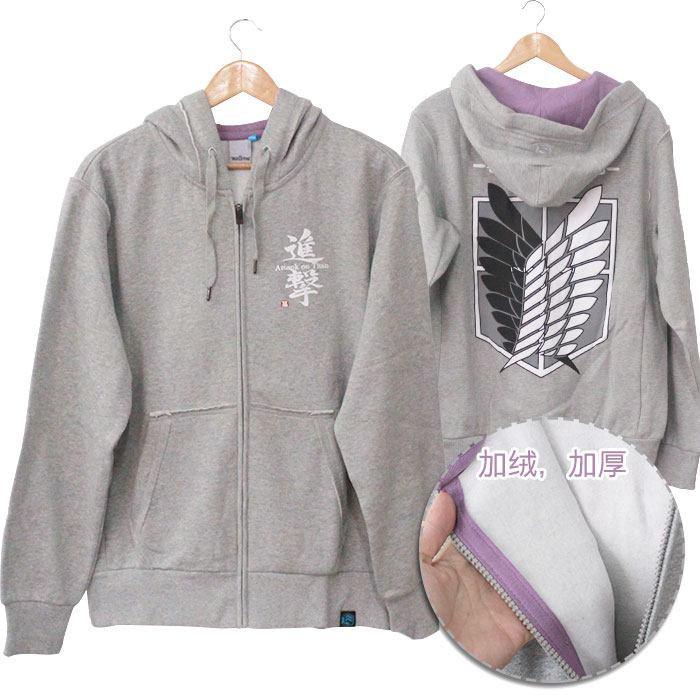 进击的巨人调查兵团标志灰色套头拉链厚卫衣L