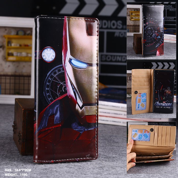 钢铁侠U斜纹二折按扣长款钱包