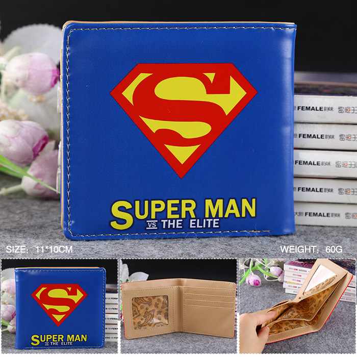 超人标志PU二折短钱包