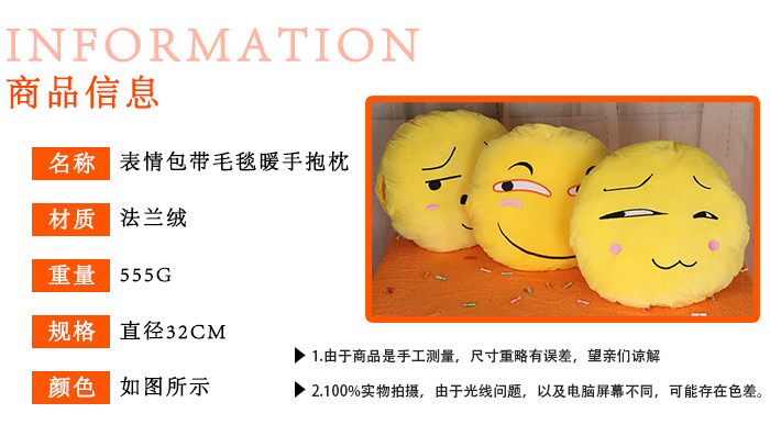 滑稽脸害怕脸表情暖手抱枕斜眼笑恶搞毛绒靠枕坐垫带小毛毯(滑稽)