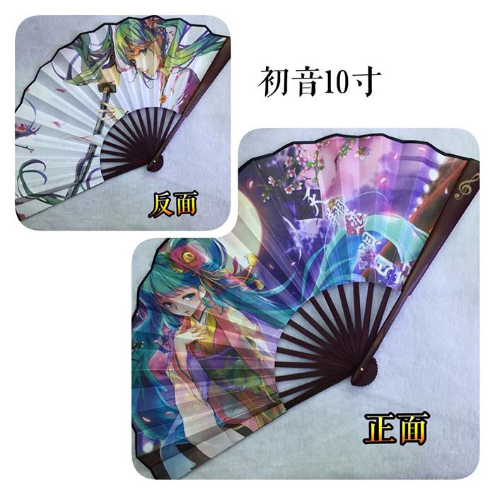 初音未来绢布10寸清凉折扇子5把起批