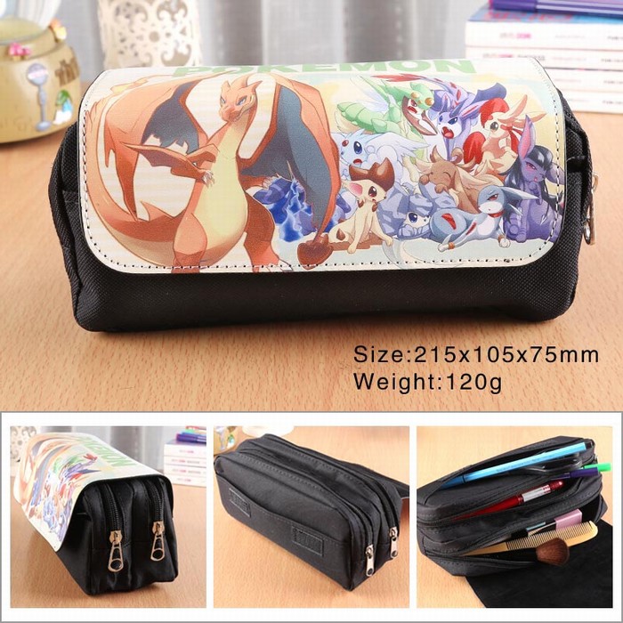 宠物小精灵喷火龙PU尼龙多功能双层拉链翻盖钱包笔袋